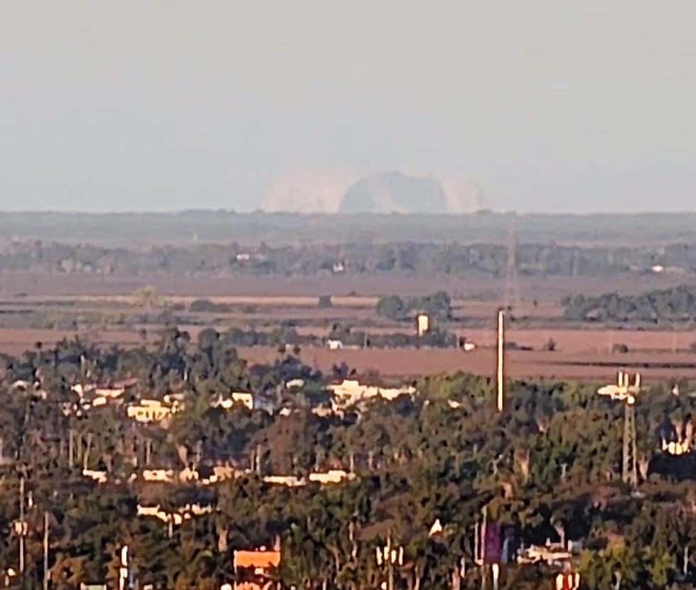 Usuarios de Luz Noticias proporcionaron fotografías y videos en donde constatan que desde la cima del Cerro de la Memoria se ve la isla del farallón de San Ignacio, enorme islote de piedra que se encuentra frente a las costas del Maviri, pero todo se debe a un fenómeno natural.