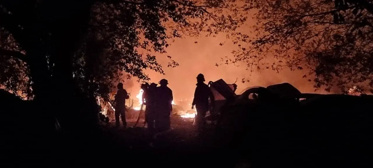 El incendio se registró esta tarde-noche en el yonke ubicado a un costado de la carretera estatal Los Mochis-Choix, en las inmediaciones del ejido 5 de Mayo, justo frente a conocida estación de servicios ubicada a unos metros del Distribuidor Vial de Los Mochis, mejor conocido como «El Trébol».