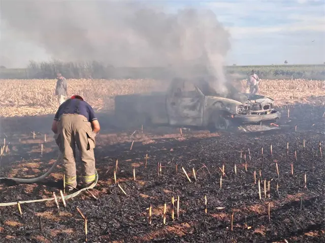 Una camioneta terminó calcinado luego de sufrir un incendio en las inmediaciones de la comisaría de Bachoco, perteneciente al municipio de Guasave.