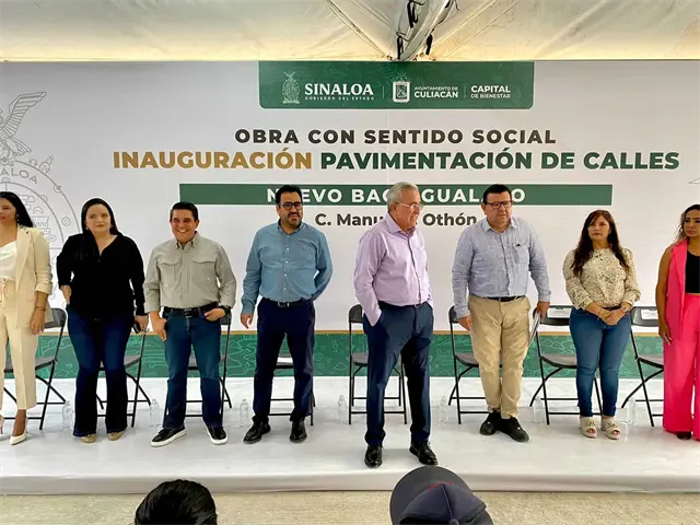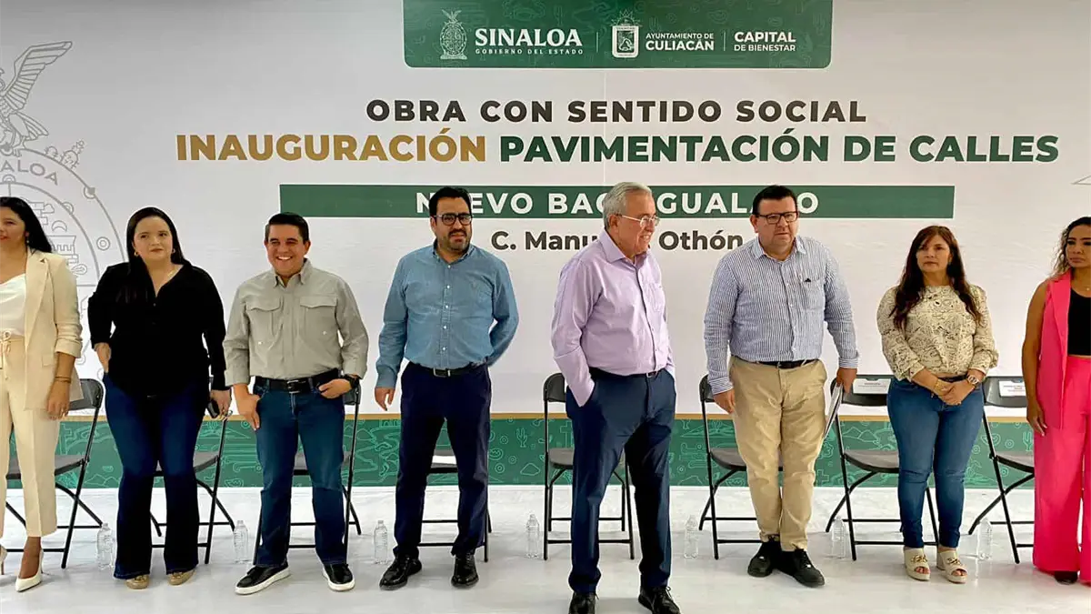 Con un pastel y música en vivo, vecinos de la avenida José Manuel Othón, de la colonia Nuevo Bachigualato en Culiacán, inauguraron la pavimentación de la calle en presencia del Gobernador de Sinaloa, Rubén Rocha Moya, y del Presidente Municipal, Juan de Dios Gámez Mendívil.