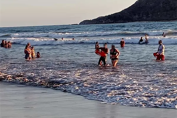 Algunos kilómetros lejos del Malecón, en Playa Brujas, un nuevo reporte alertó a los oficiales, ya que dos personas requerían apoyo para salir del mar. A la llegada de los elementos, estos proporcionaron flotabilidad a las personas, posterior a ello se les dio atención por crisis nerviosa y cansancio.