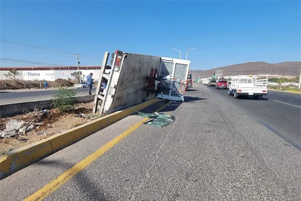 Tras el choque, el camión salió proyectado para quedar volcado en sentido contrario de La Costerita, mientras que el Mustang terminó sobre el camellón central.