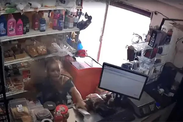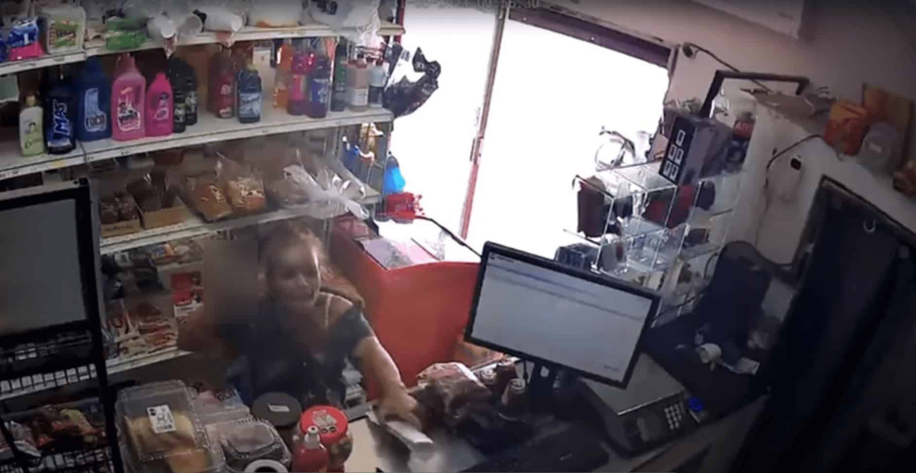 En un video que circula en redes sociales, se observa como el repartidor entra a un abarrote gritando «ayúdeme», tratando de refugiarse de los agresores mientras la empleada de la tienda le pregunta: «¿Qué pasa?, ¿por qué cierra?, ¡cierra!»; en ese momento, la mujer entra con un cuchillo y le dice: «¡El dinero, loco!».
