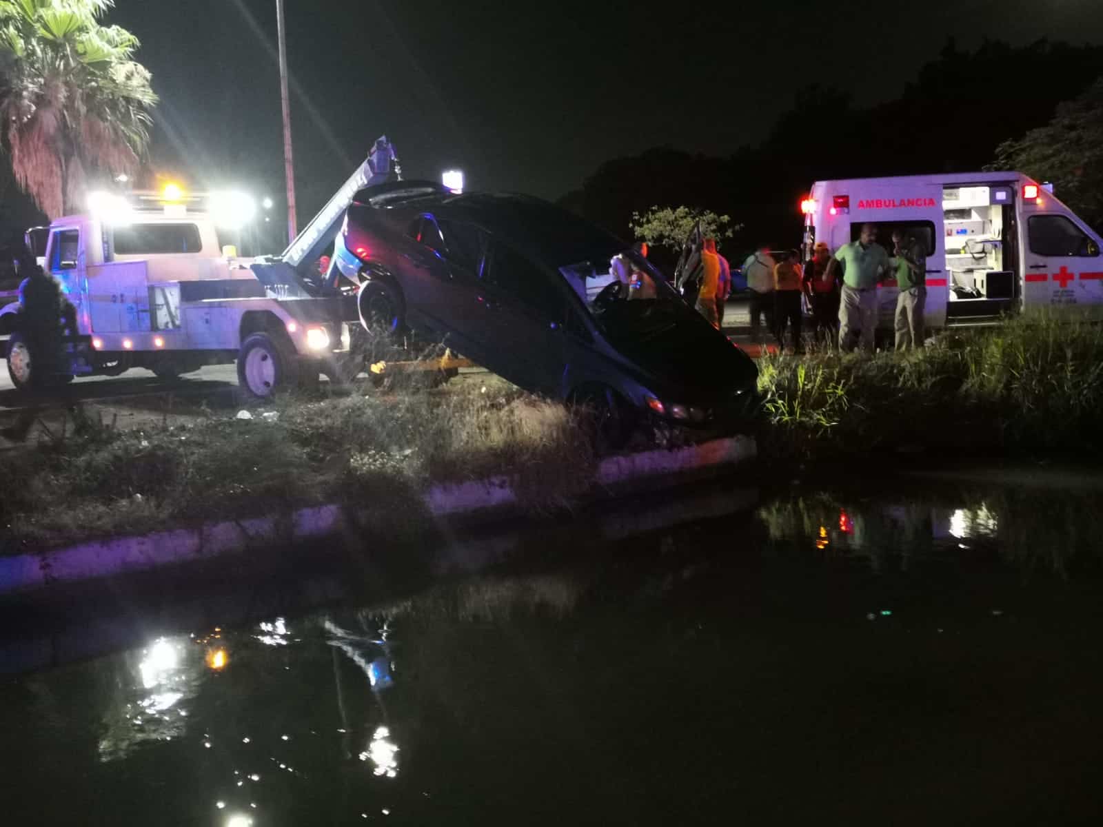 Datos indican que la mujer circulaba de norte a sur por el bulevar Rosales cuando por razones desconocidas perdió el control de la unidad Honda Civic color azul en el que viajaba por lo que terminó entrando de frente a las aguas de dicho canal.