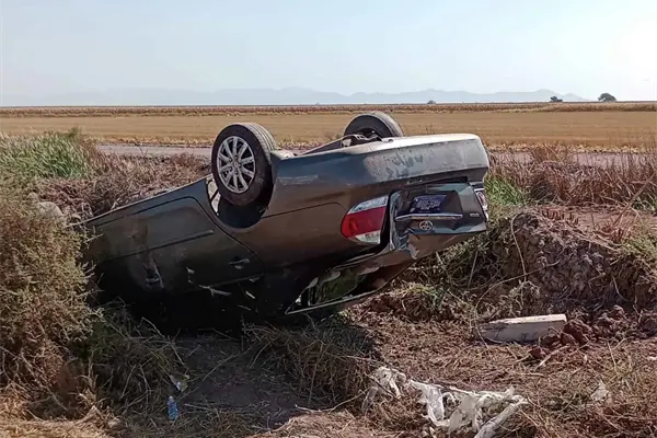 Mujer se sale de la México 15 y vuelca en el Valle del Carrizo, termina en el hospital