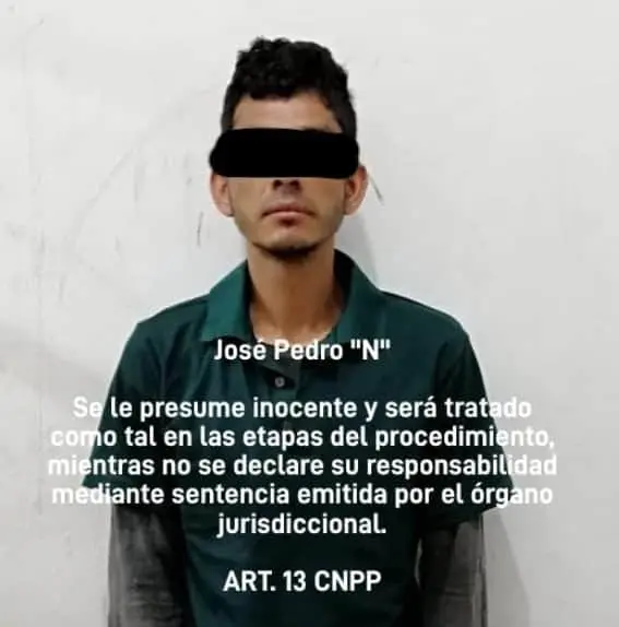 Con base a los hechos antes mencionados, elementos de la Secretaría de Seguridad Pública Municipal informaron a quien se identificó como José Pedro «N», el motivo de su detención y luego de escuchar la lectura de sus derechos fue turnado ante la instancia correspondiente para que resuelva su situación jurídica.