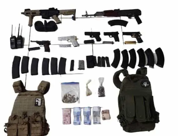 Dos vehículos, cinco armas cortas, dos armas largas, equipo táctico como chalecos antibalas, municiones, cargadores, radios y dinero, fue lo asegurado tras enfrentamiento en Tacuichamona.