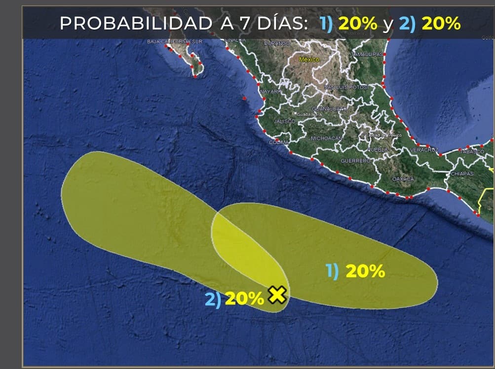 El fenómeno se formó justo enfrente de las costas del sur de Oaxaca y Guerrero y mantiene un 20 por ciento de probabilidad para desarrollo ciclónico en los próximos 7 días.