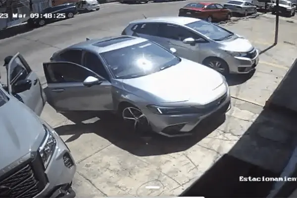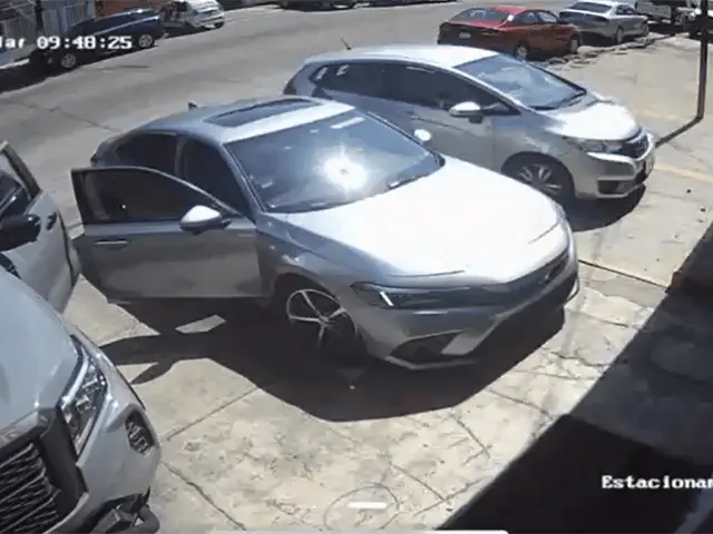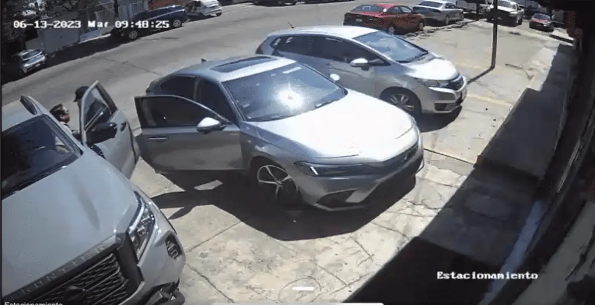 En las imágenes se alcanza a apreciar que la persona estaba arriba de la camioneta cuando llega un vehículo Honda de modelo reciente.