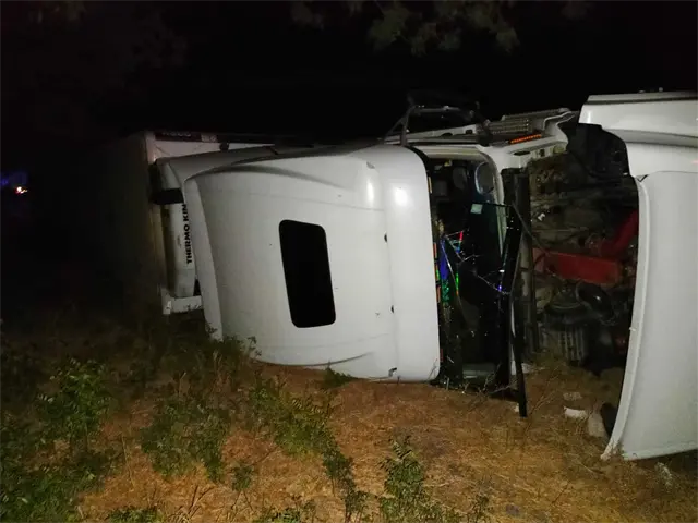 Se trata de un tractocamión con caja refrigerada, de color blanco, de la marca Volvo, con placas de circulación 73-AH-5J del Servicio Público Federal; mismo que era conducido por José Noel Mendoza Moreno, de 23 años de edad, con domicilio en la ciudad de Culiacán.