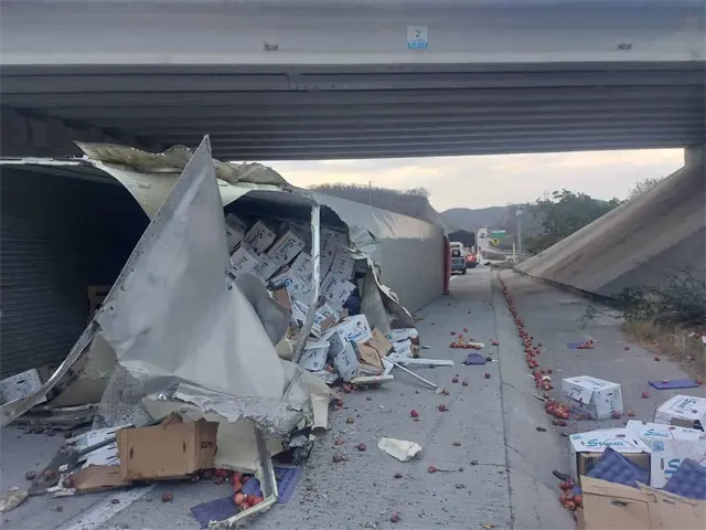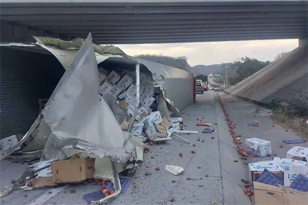 Vuelca tráiler con manzanas por el Libramiento Mazatlán