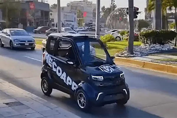 El miniauto eléctrico que circula por Mazatlán es parte de una plataforma digital que presta servicio de transporte y mandados para todos los locales y turistas que se encuentren en la «Perla del Pacífico».