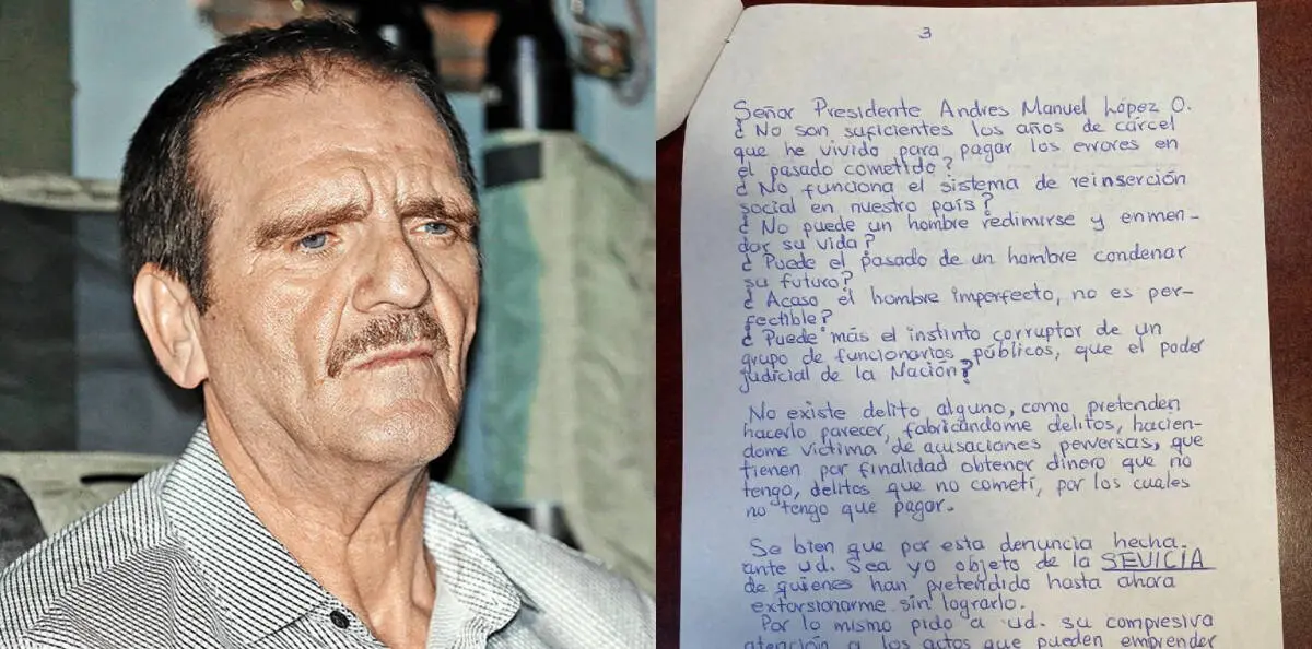 - En la carta, plantea seis preguntas al presidente López Obrador, cuestionando si los años de cárcel que ha cumplido no son suficientes para pagar sus errores pasados, si el sistema de reinserción social en el país no funciona y si el instinto corruptor de un grupo de funcionarios públicos prevalece sobre todo lo demás.