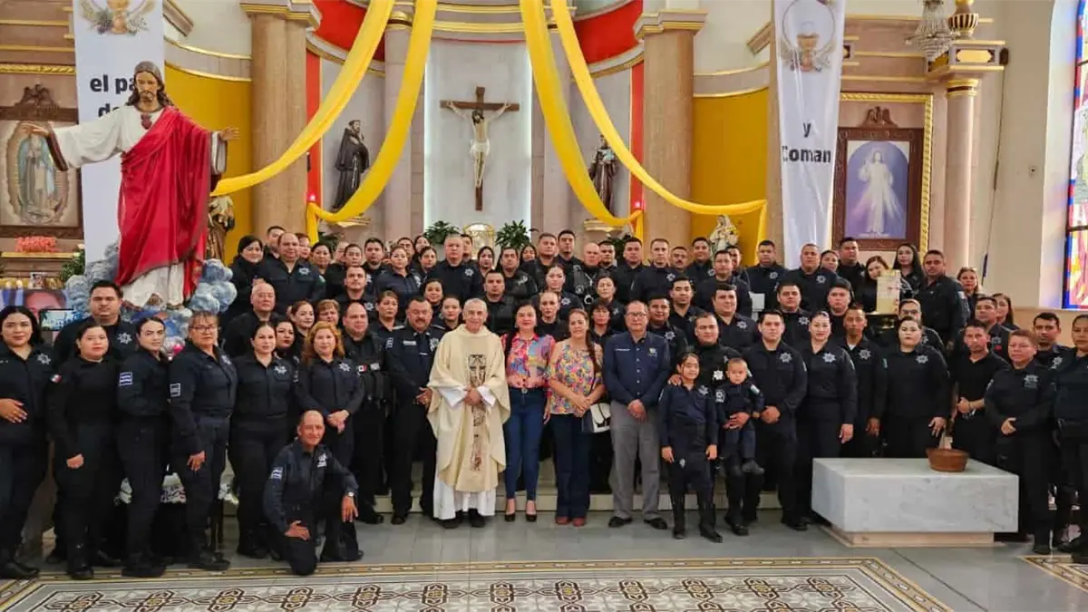 Los elementos de la Dirección de Seguridad Pública y Tránsito Municipal estuvieron acompañados por familiares y amigos, para dar gracias a Dios por un festejo más.