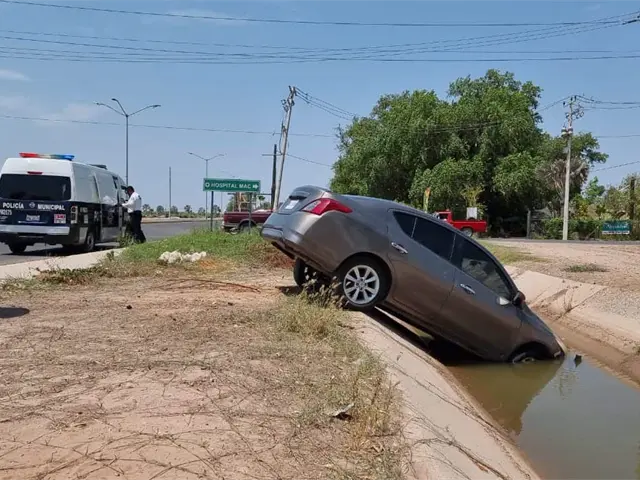 Gran susto se llevó el conductor de un vehículo la mañana de este sábado, al chocar contra el camellón central presuntamente tras tronarle un neumático, pero terminó dentro de un canal de riego cerca del entronque ha elegido Benito Juárez, en Ahome.