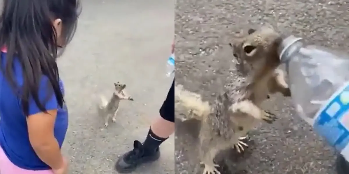 Aunque los animales no hablan como los humanos, esta valiente ardilla demostró su habilidad para comunicarse mediante señas, solicitando desesperadamente agua para aliviar los intensos calores.