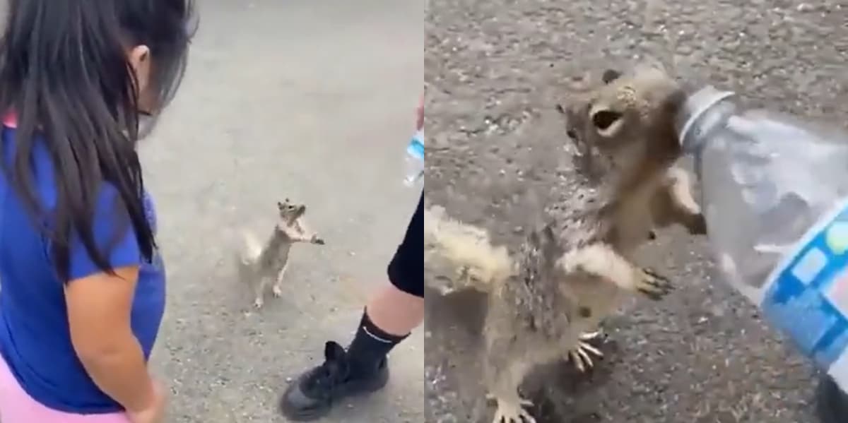 ¡Increíble! Ardilla pide agua a señas en un parque durante ola de calor | VIDEO
