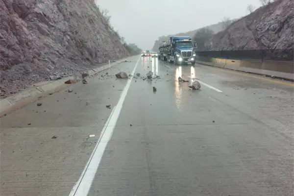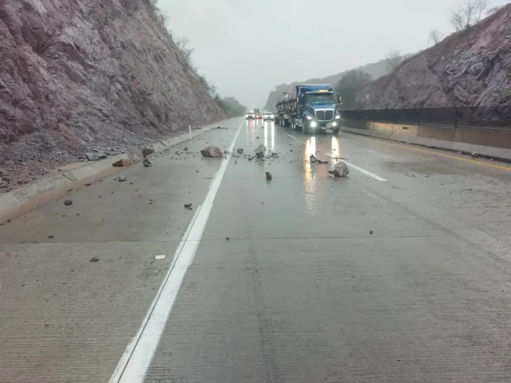 Las intensas lluvias por la baja presión remanente que dejó «Beatriz» provocó un deslave en el libramiento Villa Unión- Mazatlán en el kilómetro 253 y 254, informó Protección Civil Sinaloa.