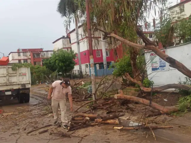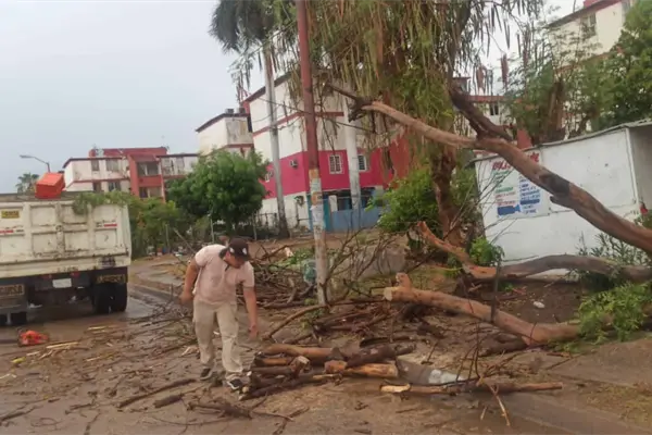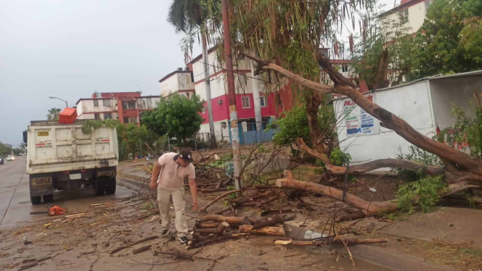 Cuadrillas de parques y jardines, así como de aseo urbano se distribuyeron para cortar y retirar árboles que cayeron por el reblandecimiento del suelo con la lluvia en lugares como: