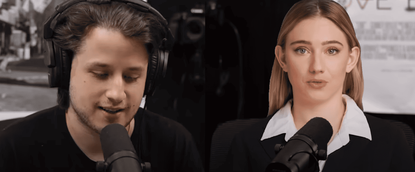 Con la apariencia de una mujer joven, de cabello rubio, rostro claro y vestida con un saco negro y blusa blanca, la IA agradeció la invitación al podcast y se presentó.