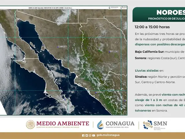 Las lluvias serán generadas por un segundo canal de baja presión sobre el noroeste de México, que propiciaría precipitaciones en el estado de Sinaloa para la tarde y noche de este domingo.
