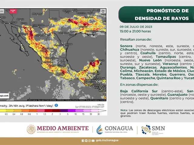 Asimismo, se esperan chubascos en Aguascalientes y San Luis Potosí, y lluvias aisladas en Coahuila y Nuevo León, todas con descargas eléctricas y posible caída de granizo. Ambiente fresco por la mañana y cálido a muy caluroso durante la tarde.