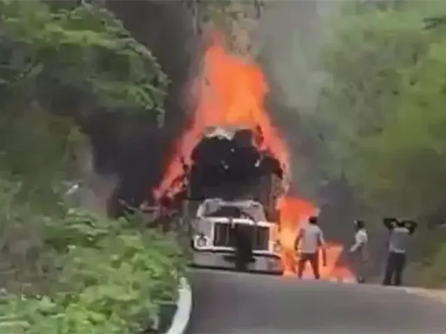 El camión quedó calcinado en uno de los carriles de la carretera estatal.