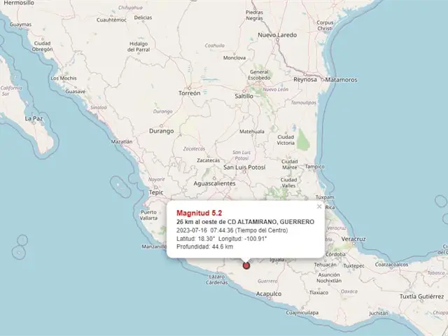 Este domingo 16 de julio se reportó un sismo de magnitud 5.2 con epicentro en Ciudad Altamirano, Guerrero.