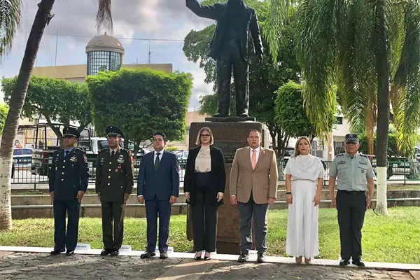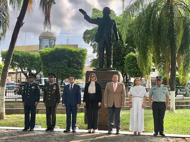 Autoridades civiles y militares conmemoraron el aniversario luctuoso número 151 del «Benemérito de las Américas» Don Benito Juárez, con un izamiento de bandera a media asta y con Honores de Ordenanza en la plaza cívica de Palacio de Gobierno.