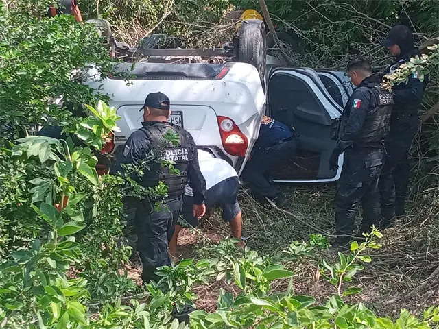 Una persona que viajaba a exceso de velocidad perdió el control de su vehículo y terminó volcando y saliéndose del camino a la altura del poblado de El Pozole, cerca de Villa Unión en El Rosario.