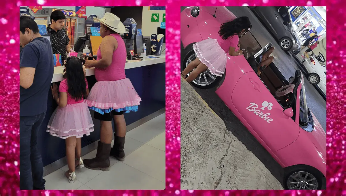 El hombre en cuestión lleva por nombre Eleazar Rodríguez y el mismo se dio la tarea de difundir en sus redes sociales el atuendo que utilizó para complacer a su hija y llevarla al cine a ver la película de Barbie.