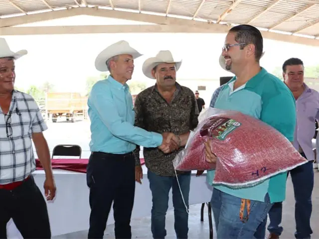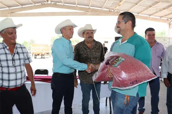 La entrega de la semilla se realizó en las instalaciones de la Asociación Ganadera del Municipio de Ahome, por parte del Alcalde Gerardo Vargas Landeros, el Director de Ganadería del Estado de Sinaloa Tirso Robles.