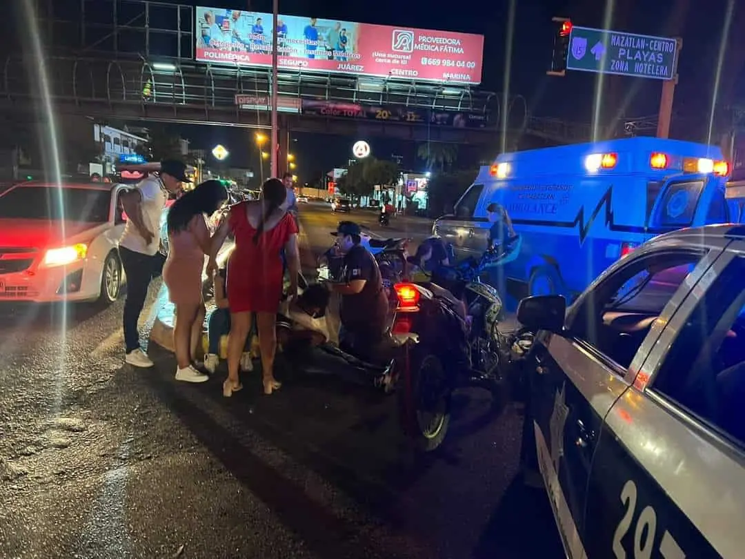 Tras el percance, se contactó a los cuerpos de emergencia y fueron paramédicos de Bomberos Veteranos de Mazatlán quienes atendieron el accidente para dar las primeras atenciones a los involucrados y su posterior traslado a un puesto de socorros.