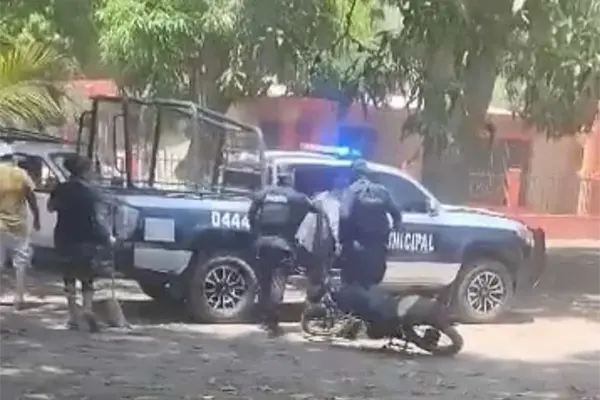 El denunciante compartió para Luz Noticias dos videos que fueron grabados en una de las colonias de la sindicatura en mención, y en uno de ellos solo se aprecia que el oficial le pega una palmada en la espalda a un joven que al parecer tiene dificultades para caminar por un golpe.