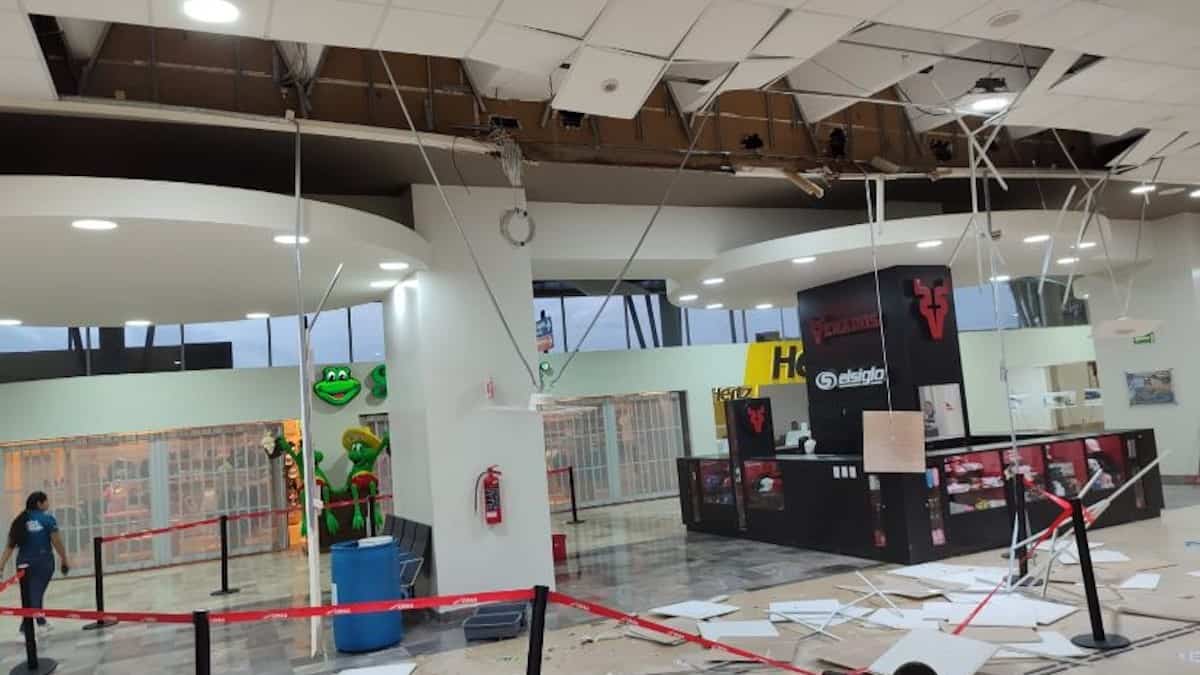 Colapsa parte del techo del Aeropuerto Internacional de Mazatlán por lluvias