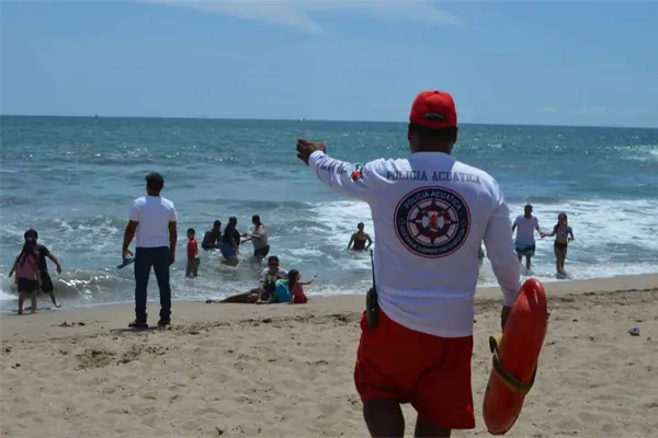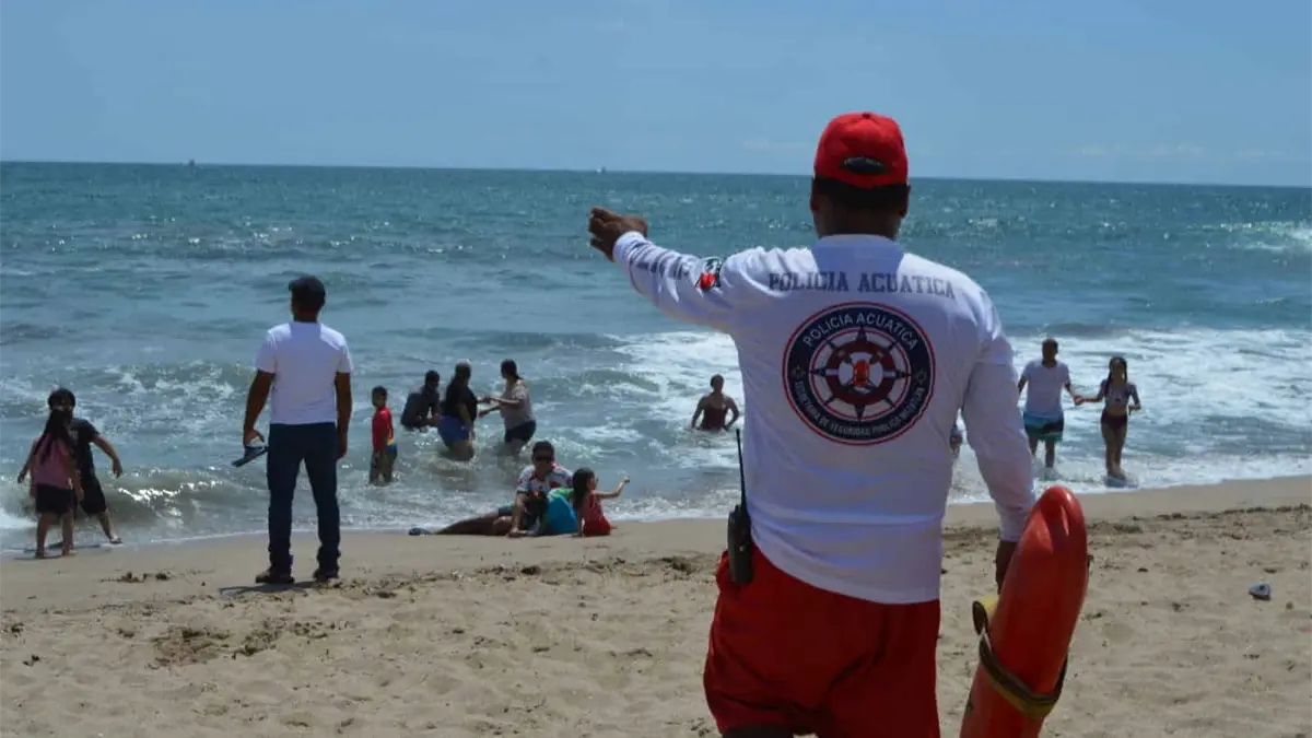 Gustado Espinoza Bastidas, Coordinador de la Policía Acuática, informó que los bañistas pueden estar en el mar, pero es recomendable no introducirse si el agua les rebasa la cintura.