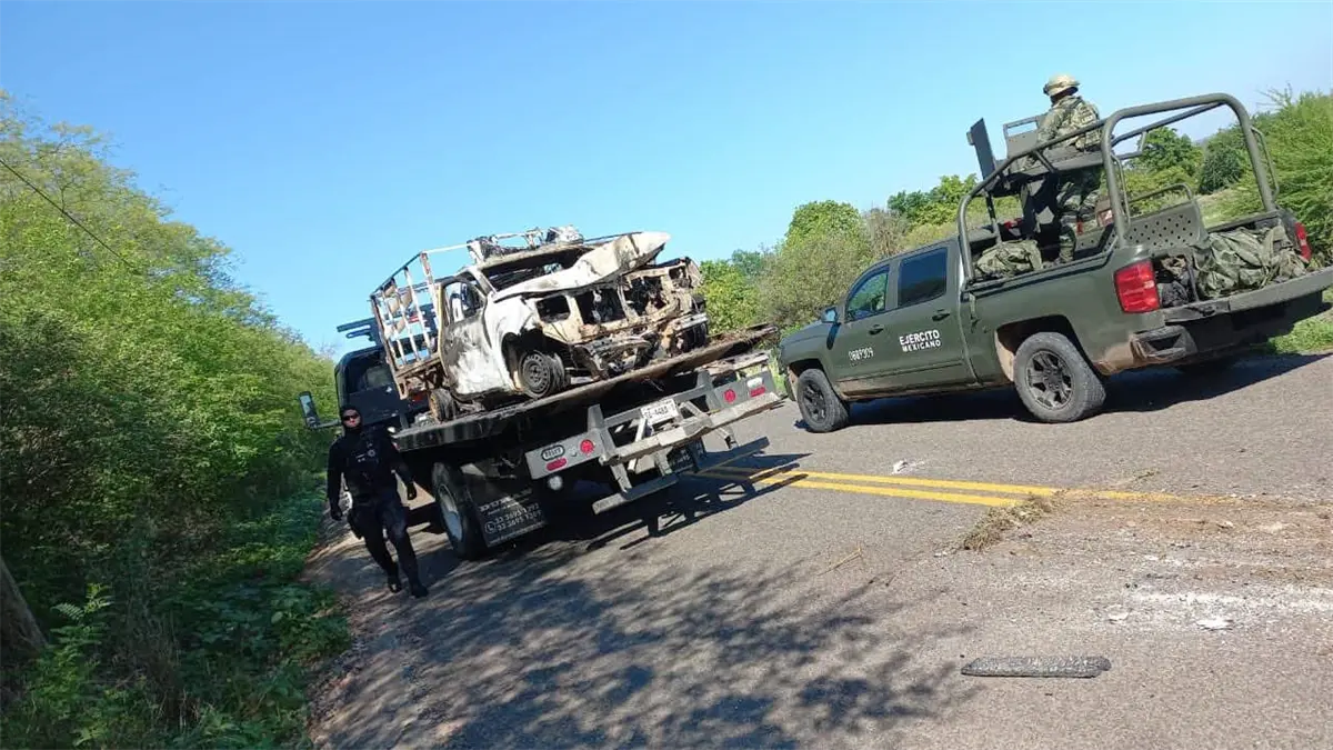 Ejército retira vehículos incendiados tras hechos de violencia en el municipio de Sinaloa