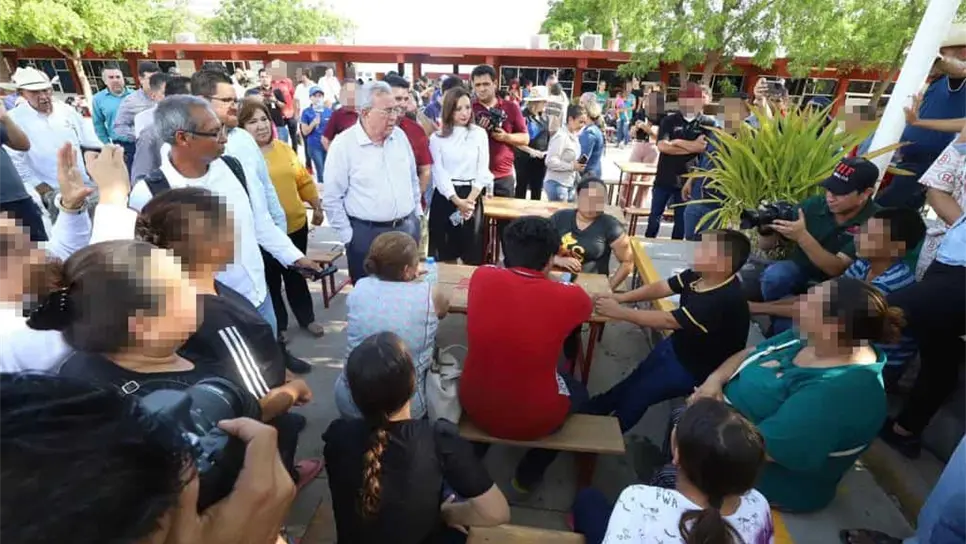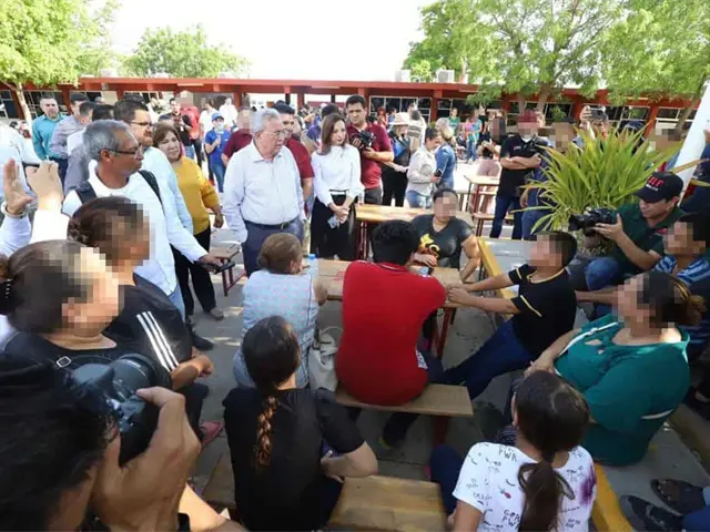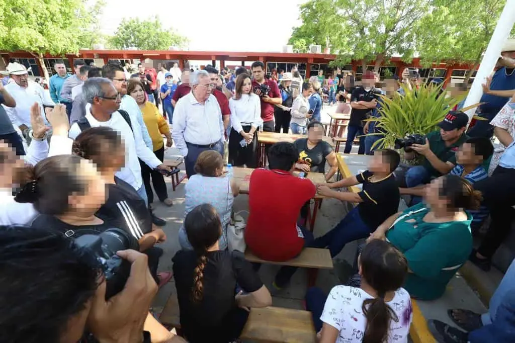 El gobernador Rubén Rocha Moya asistió al refugio temporal ubicado en el Centro de Bachillerato Tecnológico Industrial y de Servicios No. 45, en la ciudad de Guamúchil, en donde tuvo un acercamiento con las personas del municipio de Sinaloa y Mocorito, quienes fueron desplazadas de sus hogares, a quienes les aseguró que no se encuentran solos, ya que desde el gobierno se atienden las necesidades para resolver el problema y que pronto puedan volver a sus hogares.