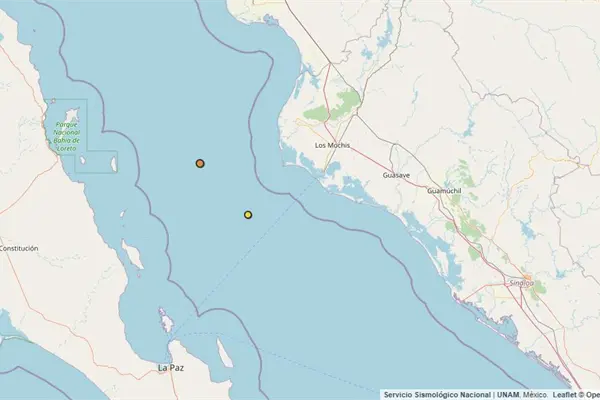 De acuerdo al Servicio Sismológico Nacional el sismo se registró a 99 kilómetros al oeste de Ahome, Sinaloa, a una profundidad de 10 kilómetros.