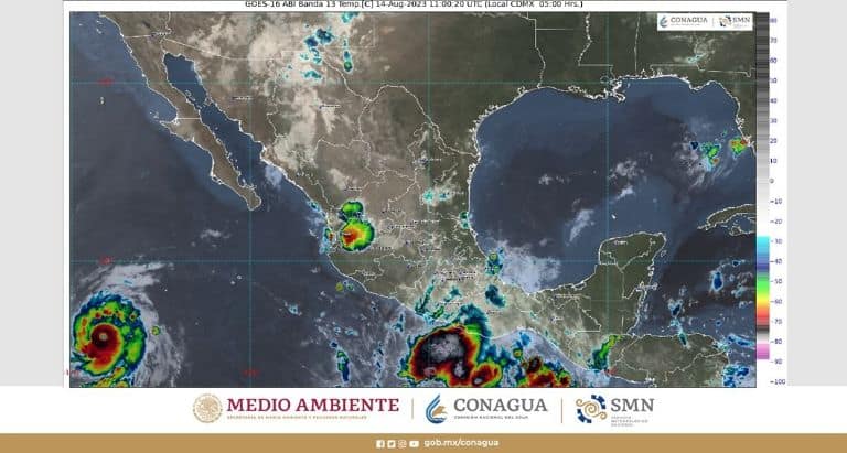 Baja California Sur, Greg ya se convirtió en tormenta tropical y para hoy, lunes 14 de agosto, la Conagua detalló la lista de estados del país en donde se esperan lluvias, precipitaciones y descargas eléctricas: