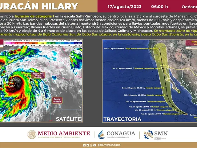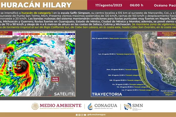De acuerdo con las autoridades, «Hilary» originará lluvias muy fuertes, fuertes rachas de viento y oleaje elevado en el sur y occidente de la República Mexicana.