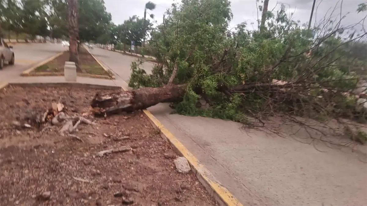 Árboles caen sobre dos vehículos tras tormenta en Culiacán