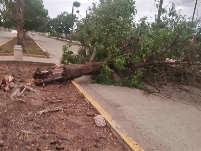 Otro accidente similar se registró por el bulevar Punta Azul, cuando un vehículo Nissan Sentra pasaba por el lugar y le cayó un árbol de la zona; por el momento los vehículos fueron desviados por las calles aledañas.
