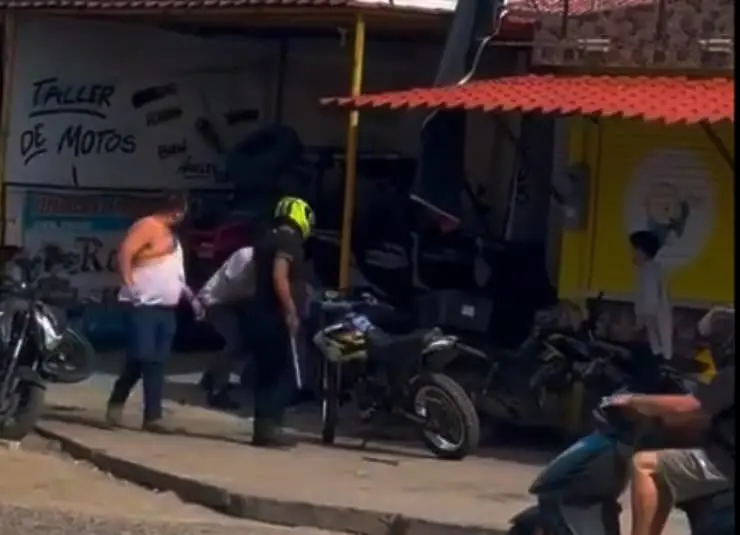 Acto seguido el hombre se va del sitio y vuelve con 5 personas a bordo de dos carros y empiezan a agredir al hombre y a su hijo, siendo el hombre de edad adulta el más golpeado.