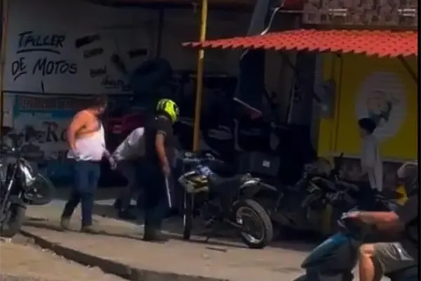 En las imágenes captadas por un transeúnte se observa a al menos 5 personas golpeando a dos trabajadores de este taller de motocicletas que resultaron ser padre e hijo, dejando al hombre mayor inconsciente sobre el pavimento, mientras que el hijo intentaba ayudarlo.