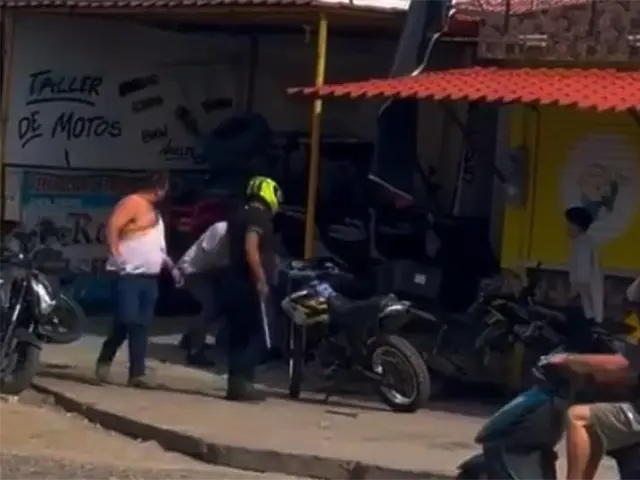 Según el relato de testigos, el hombre que se observa de camiseta de resaque llegó con otra persona buscando una motocicleta, la cual habría dejado para arreglar, pero esta no quedó bien y en el taller no quisieron hacerse responsables.