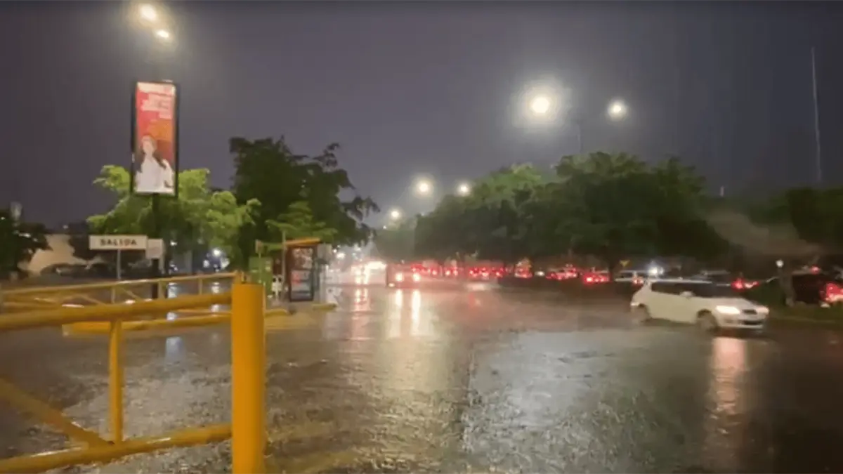 A través de una publicación en redes sociales, autoridades del aeropuerto informaron que hay una temperatura de 33 °C, con 5 millas de visibilidad, así como ráfagas de viento y lluvia fuerte, por lo que se suspendieron las operaciones hasta nuevo aviso.