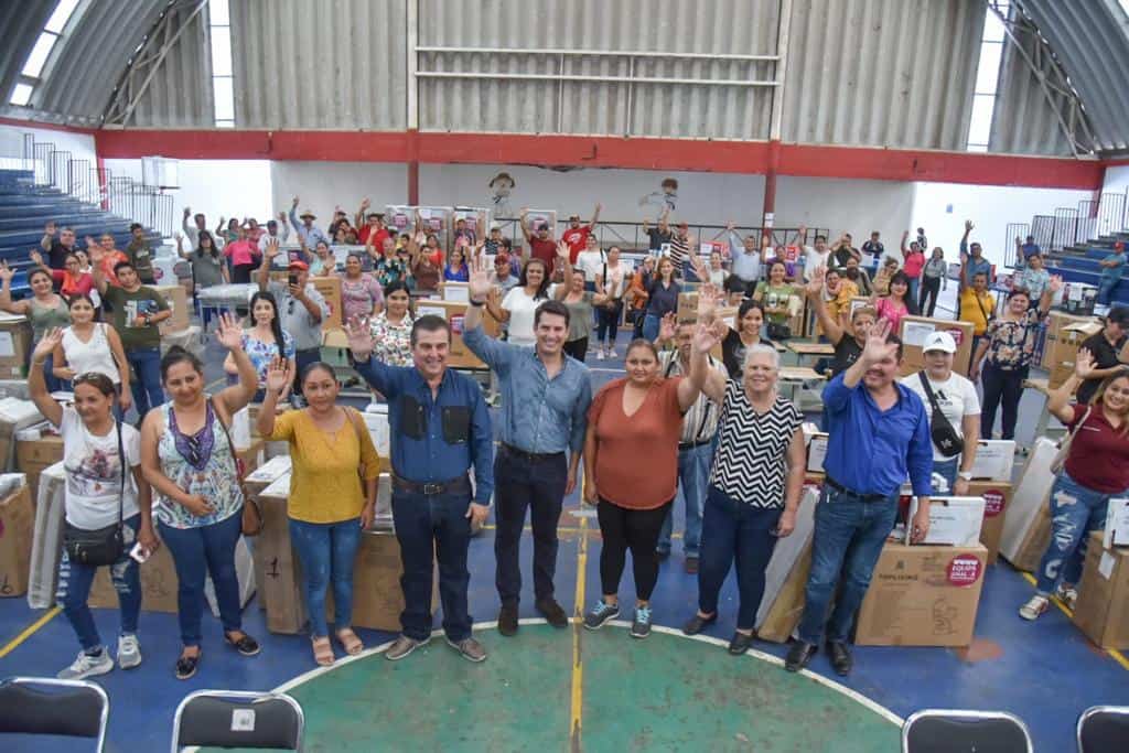 Los beneficiados se reunieron en las instalaciones del Polideportivo de la Ciudad Deportiva Centenario, de la ciudad de Los Mochis, para recibir sus equipos de trabajo.