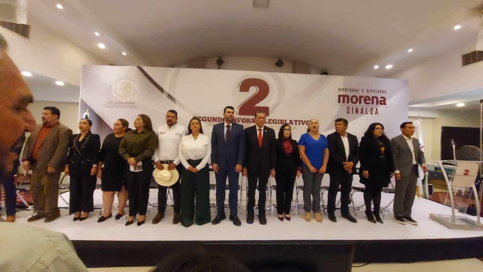 Los diputados locales de Ahome rindieron cuentas ante la sociedad en su Segundo Informe de Labores Legislativas la tarde-noche de este jueves, en un salón de eventos de Los Mochis ante un concurrido auditorio lleno de simpatizantes y militantes de Morena.