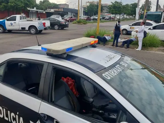 Tras el accidente, las personas de la moto quedaron en el camellón central con lesiones en el cuerpo.